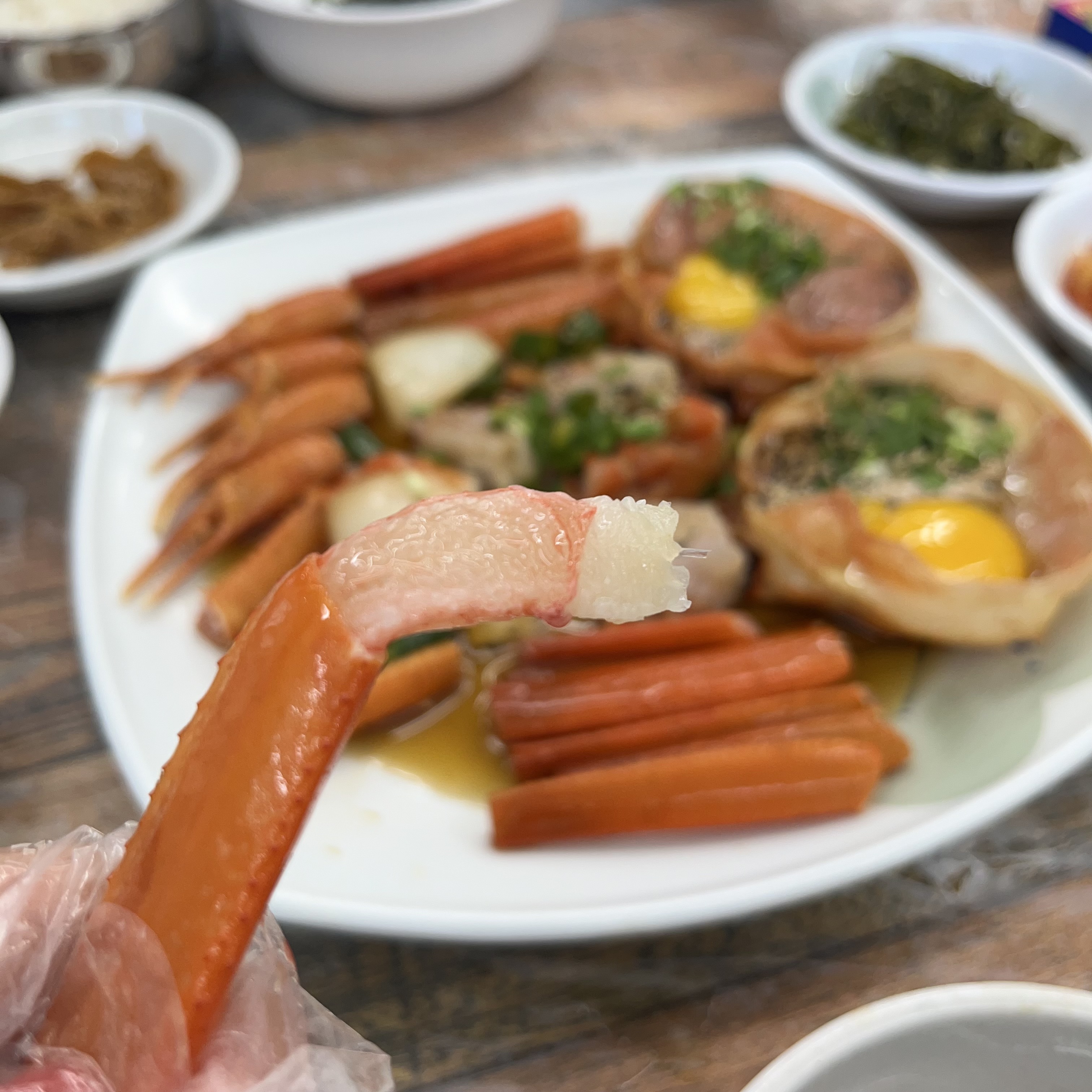 홍게 다리도 바로 뽑아 먹을 수 있게 관절을 제거한 상태로 다 잘라 주셔서, 쉽게 먹을 수 있어요!